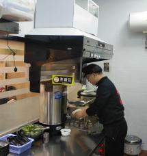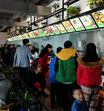 連鎖小吃店,現(xiàn)場人氣爆棚,使用了多環(huán)牌無無煙管油煙機(jī)的商